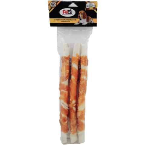מקלות עור בקר לא מעובד עם בשר עוף מיובש